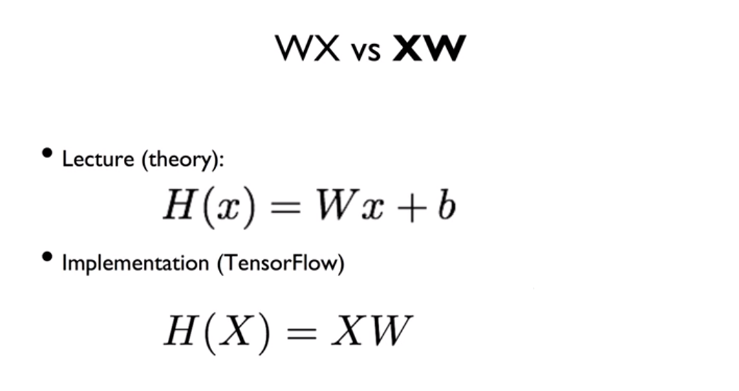 - Hypothesis: H(x) = Wx + b(W: weight, b: bias)